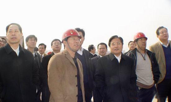 上圖右三為張新起書記在體育場南入口二樓平臺,前左一為建設局局長李廣東,前左二為董事長徐鵬強,前右一為體育局局長耿文,前右二為集團公司孫孔喜。 市委書記張新起再次視察奧體中心體育場工程 3月3日上午,市委書記張新起在市建設局局長李廣東,規(guī)劃局局長張恒道,體育局局長耿文等同志的陪同下視察了集團公司承建的奧體中心體育場工程。 集團公司董事長徐鵬強,集團公司奧體中心現(xiàn)場總指揮孫孔喜陪同視察。在視察過程中,孫孔喜對施工情況做了簡要的匯報。張書記對施工進度和質(zhì)量及安全施工情況表示滿意,對施工現(xiàn)場的施工細節(jié)提出更高的要求,如入口樓梯的花壇與地面交接處要做防水處理,花崗巖鋪裝的縫隙要均勻一致。對張書記提出的要求孫總立即做了安排落實。(09.03.03) |