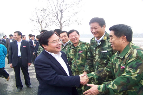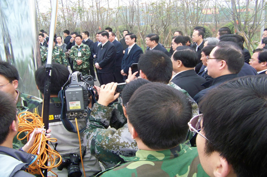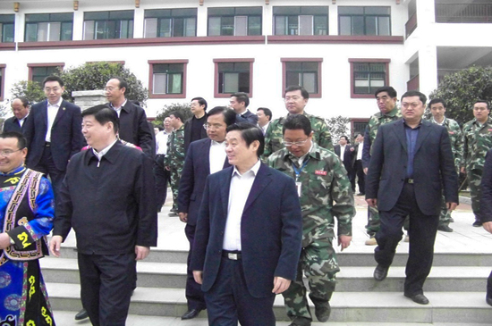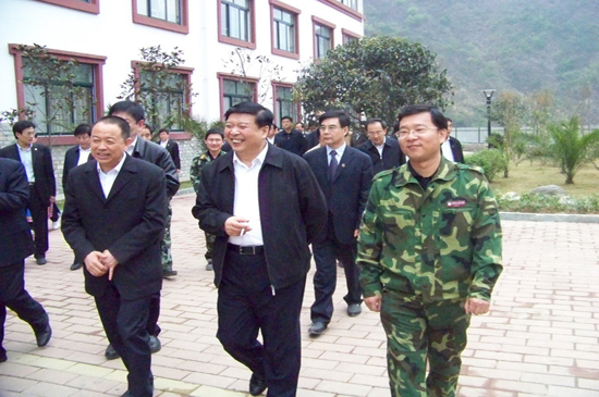 4月10日上午,山東省黨政代表團在省委書記姜異康、省長姜大明率領下,到北川新縣城檢查指導援建工作,山東省十七地市黨政負責人參加檢查。