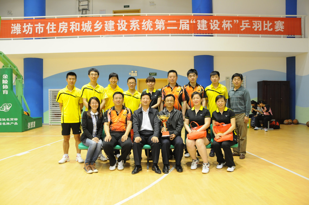 4月26日至28日,濰坊市建設(shè)系統(tǒng)迎“五一”第二屆“建設(shè)杯”乒羽比賽在濰坊藝術(shù)中心舉行,共有來自市建設(shè)系統(tǒng)的12支代表隊、百余名運(yùn)動員參加了乒乓球和羽毛球的比賽。集團(tuán)公司派出的乒羽代表隊獲得團(tuán)體總分第一名。4月28日下午,在藝術(shù)中心籃球館舉行了頒獎儀式和閉幕式,市建設(shè)局副局長李振龍、杜天斌出席閉幕式并為獲獎運(yùn)動員以及代表隊頒獎。集團(tuán)公司監(jiān)事會主席、黨委副書記、紀(jì)委書記滕忠斌參加閉幕式并代表集團(tuán)公司領(lǐng)取團(tuán)體比賽第一名獎杯。