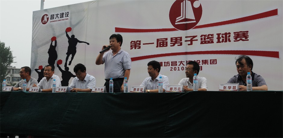 2010年8月10日至24日在濰坊中學(xué)籃球場和籃球館舉行。集團(tuán)公司高管層領(lǐng)導(dǎo)朱九洲、滕忠斌、李坤明、穆乃杰、張連悅、張學(xué)智、閆鵬等出席8月10日開幕式并在主席臺就坐,來自集團(tuán)公司各基層單位、子公司和總部的十四支代表隊、各單位啦啦隊及大賽組委會全體人員近500人參加了開幕式。8月10日下午4時,開幕式正式開始,各參賽隊運(yùn)動員和執(zhí)法裁判在引導(dǎo)禮儀的引領(lǐng)下,依次經(jīng)過主席臺接受集團(tuán)公司高管層領(lǐng)導(dǎo)的檢閱。開幕式由集團(tuán)公司工會主席兼本次大賽組委會主任李坤明主持,黨委副書記、監(jiān)事會主席、紀(jì)委書記滕忠斌代表集團(tuán)公司致辭,4時15分,集團(tuán)公司總經(jīng)理朱九洲宣布“濰坊昌大建設(shè)集團(tuán)第一屆男子籃球友誼賽開幕”。開幕式后進(jìn)行了六場小組賽。按照日程,將進(jìn)行總共49場比賽,最終決定首屆男子籃球賽的冠、亞、季軍和各隊排名。