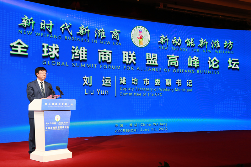 2020年6月23日下午,由濰坊市委、市政府主辦,市工商聯(lián)、市投資合作促進(jìn)局承辦的第二屆濰坊發(fā)展大會(huì)全球?yàn)H商聯(lián)盟高峰論壇在魯臺(tái)會(huì)議中心舉行。市委副書記劉運(yùn)出席并講話,省工商聯(lián)副主席郭建禮和市政協(xié)副主席、市工商聯(lián)主席李士來分別致辭。集團(tuán)總經(jīng)理朱九洲作為市工商聯(lián)副主席出席本次論壇。本次論壇采用線上+線下的方式進(jìn)行,與會(huì)嘉賓觀看了濰坊產(chǎn)業(yè)推介宣傳片,部分嘉賓作了交流發(fā)言,并舉行了“濰商回歸”聯(lián)絡(luò)處授牌儀式。 ![]() ![]() |
