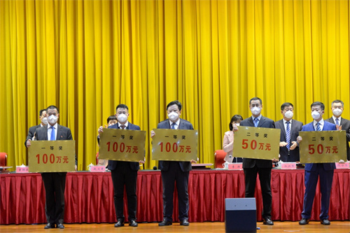 徐鵬強(qiáng)董事長榮獲高新區(qū)突出貢獻(xiàn)企業(yè)家 集團(tuán)總裁朱九洲參會并代為領(lǐng)取獎牌