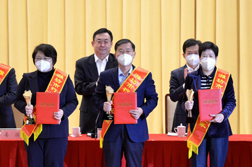 徐鵬強(qiáng)董事長(zhǎng)出席全市工作動(dòng)員大會(huì)并領(lǐng)受行業(yè)領(lǐng)軍企業(yè)家榮譽(yù)稱號(hào)獎(jiǎng)杯證書