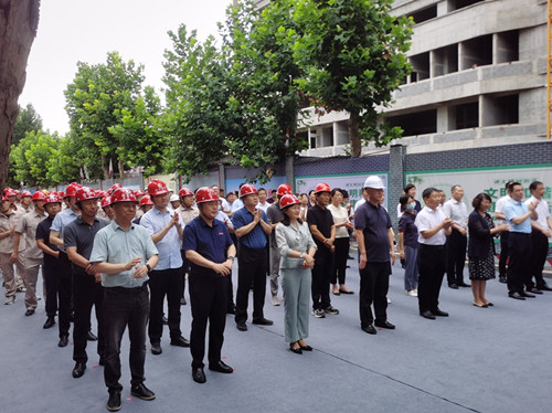2023年7月25日上午10點(diǎn)18分,由集團(tuán)四建公司、一建公司分別總承包施工的濰坊市人民醫(yī)院內(nèi)科院區(qū)項(xiàng)目、急救綜合樓項(xiàng)目封頂儀式在內(nèi)科院區(qū)項(xiàng)目現(xiàn)場(chǎng)隆重舉行。 濰坊市人民醫(yī)院黨委書記、院長(zhǎng)蘇茂泉,副院長(zhǎng)丁硯生等院方領(lǐng)導(dǎo),集團(tuán)公司董事長(zhǎng)徐鵬強(qiáng)、總工程師房海、副總裁吳杰、王建波,濰坊天鵬建設(shè)監(jiān)理有限公司林少杰、濰坊信一項(xiàng)目管理有限公司 姜文玲、山東經(jīng)緯工程管理有限公司孟凡江、山東世紀(jì)華都工程咨詢有限公司劉玉龍等嘉賓出席儀式。 封頂儀式由丁硯生同志主持,蘇茂泉同志宣布“封頂”并與徐鵬強(qiáng)董事長(zhǎng)及院方領(lǐng)導(dǎo)共同裝填封頂砼。 參加封頂儀式的還有:集團(tuán)一建公司總經(jīng)理周光輝,裝飾幕墻公司總經(jīng)理付光文,安裝工程公司總經(jīng)理劉志偉,第二安裝工程公司總經(jīng)理賈德祥、黨支部書記盧啟東,第二裝飾幕墻公司黨支部書記陳鵬、四建公司副總經(jīng)理叢興杰、第三裝飾幕墻公司副總經(jīng)理徐志明以及項(xiàng)目建設(shè)、監(jiān)理、施工方面的員工代表等100余人。(信息來(lái)源:劉斌)