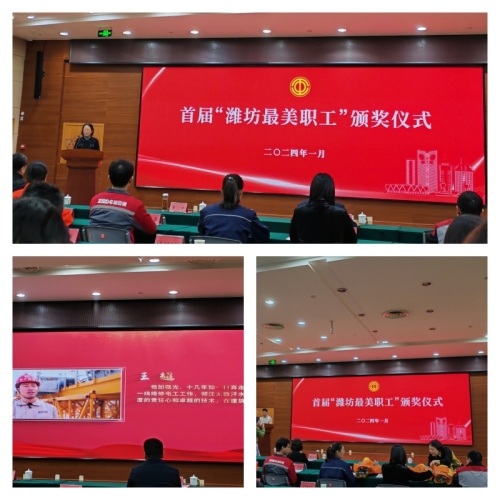 2024年1月19日上午,由市總工會(huì)舉辦的首屆“濰坊最美職工”頒獎(jiǎng)儀式在濰坊市工人文化宮一樓西區(qū)104會(huì)議室隆重舉行。集團(tuán)公司工會(huì)主席穆乃出席頒獎(jiǎng)儀式。在首屆10名最美職工中,集團(tuán)機(jī)施公司維修電工王超獲此殊榮。