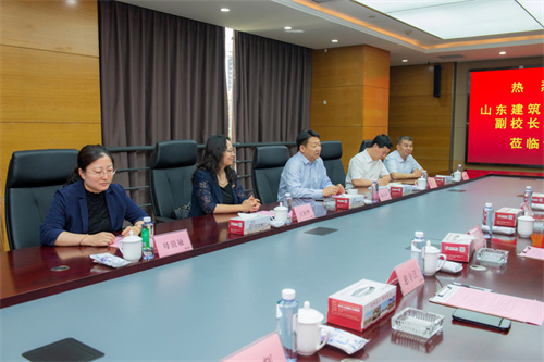 2025年5月19日上午,山東建筑大學(xué)黨委委員、副校長邱立平一行5人來集團(tuán)公司調(diào)研。集團(tuán)公司黨委書記、董事長徐鵬強(qiáng)陪同。邱立平一行參觀了企業(yè)展廳、建筑史館,詳細(xì)了解集團(tuán)公司發(fā)展歷程、企業(yè)文化。隨后,賓主雙方重點(diǎn)圍繞學(xué)校學(xué)科專業(yè)特色、人才培養(yǎng)、校企合作等進(jìn)行了深入交流。 山東建筑大學(xué)科學(xué)技術(shù)處處長王軍、社會(huì)科學(xué)處處長王淑華、市政與環(huán)境工程學(xué)院黨委書記李杰瑞、市政與環(huán)境工程學(xué)院院長母銳敏;濰坊市奎文區(qū)副區(qū)長劉兵(掛職,原山建大資源與環(huán)境創(chuàng)新研究院負(fù)責(zé)人),濰坊市建筑設(shè)計(jì)研究院黨委書記趙延國,集團(tuán)公司副總裁惠守江以及企業(yè)發(fā)展部總經(jīng)理張煒、一建公司總經(jīng)理周光輝參加座談。
